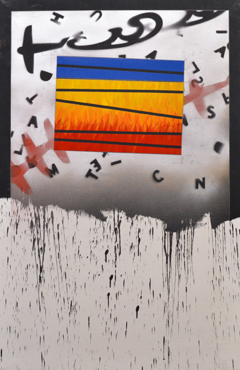 A fire burns fiercely within Angeli’s soul which is also the centerpiece of this painting. The dark bomber planes streaking across the canvas as black letters rain down. He met many fellow artists during his life, many of which shared the same passions as he did, which in turn helped inspire one another through their art. Some spoke different languages than he did, but war, poverty, and creativity are all universal themes.