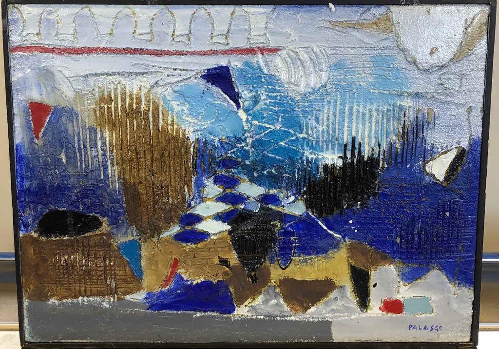 citta' di mare (sea city) Being that Palasgo has an intimate relation with Venice we can understand how this had an influence in many of his works. In this vibrant work you can see just that the relation between the man and his habitat. The enjoyable and mysterious mirror of water guiding you to the shore with the surrounding neighborhood standing still for generations waiting for you