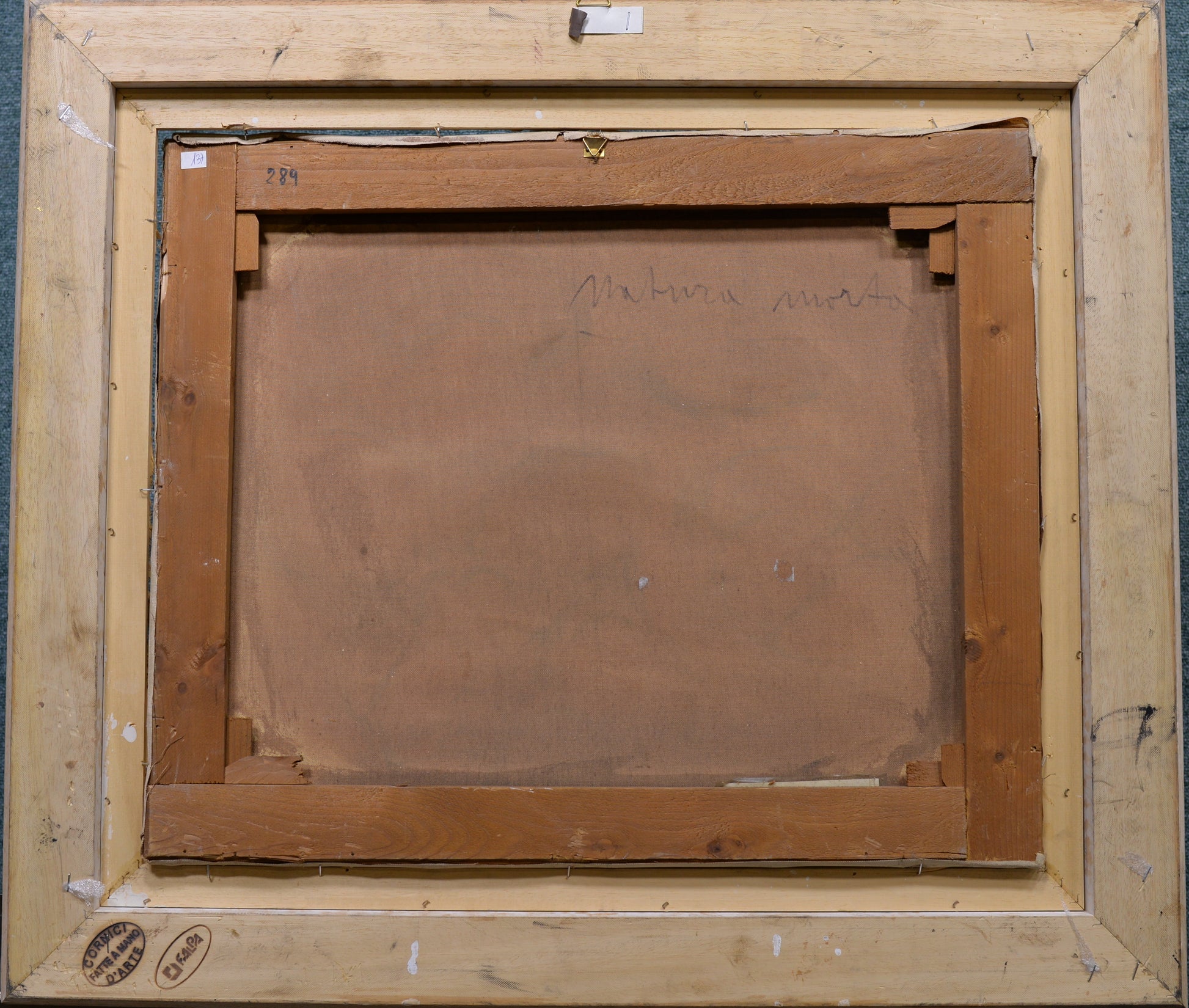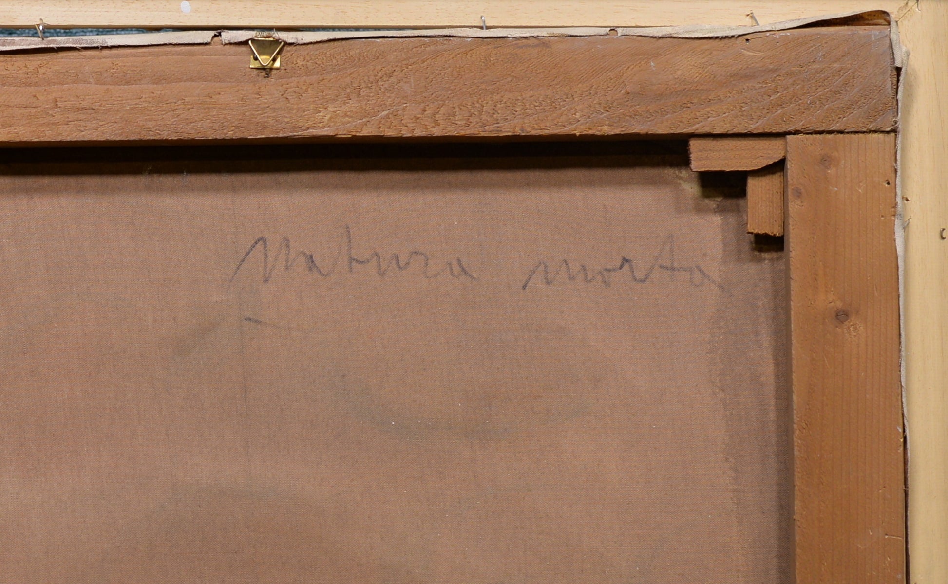 Beginning counterclockwise from the upper left stands a blue glass carafe placed furthest from the other subjects. Directly below on a white porcelain plate is a grouping of a lemon, a pair of yellow onions, and an Italian citrus fruit known as cedro. Off to the right, two limes face one another and slightly spaced apart. Finally, three large bulbs of unpeeled garlic with protruding roots. Finally, resting in a deep porcelain bowl sits two onions parallel to one another.