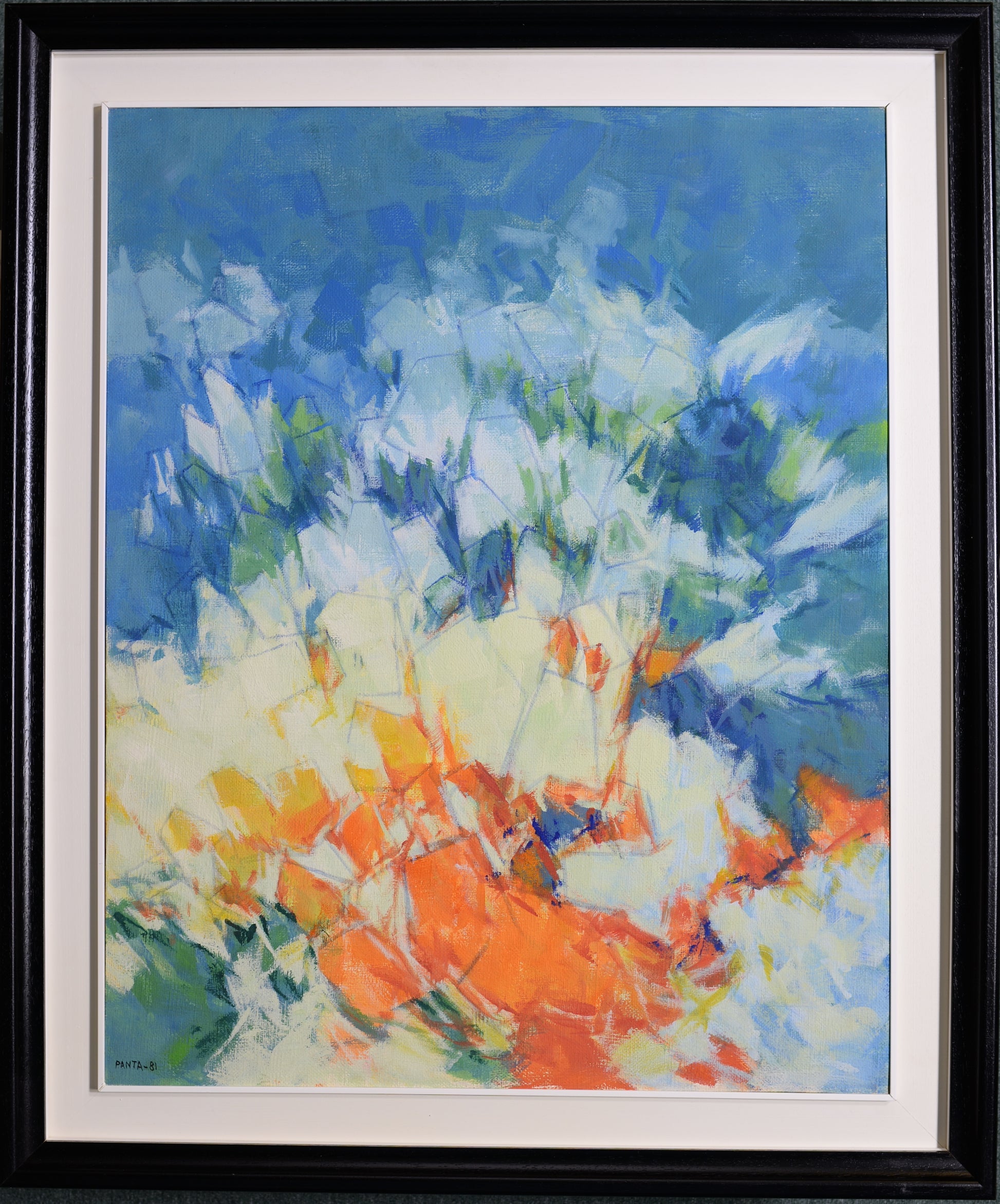 The janky patterns here are not unlike the natural formation of ice crystals on the surface of a frozen pond, complete with a school of orange koi fish suspended in time below.
